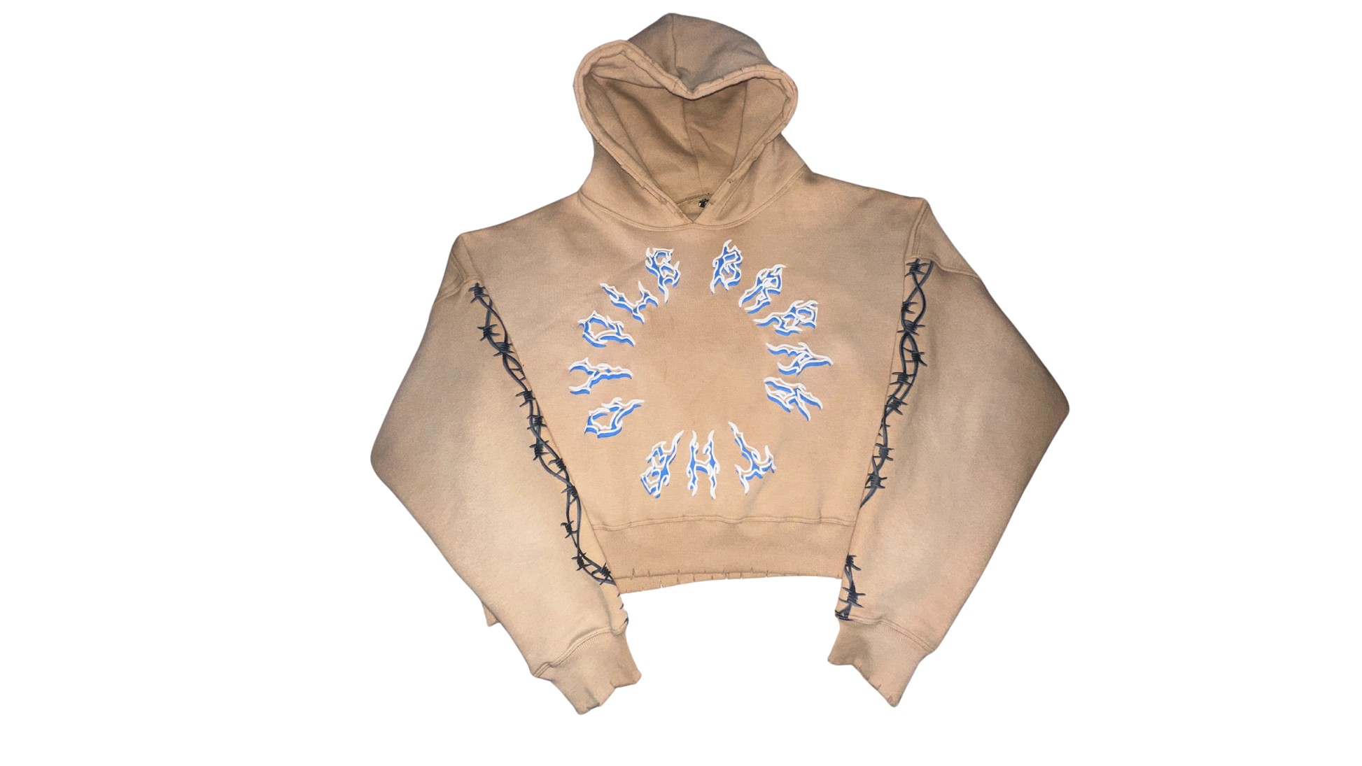 Each hoodie is uniquely distressed and sun-faded, undergoing a meticulous process that gives it a naturally weathered, vintage aesthetic. The worn-in look reflects the essence of resilience, capturing the scars of struggle as badges of honor. For those who prefer a more classic, full-length fit, simply size up to adjust the crop. -