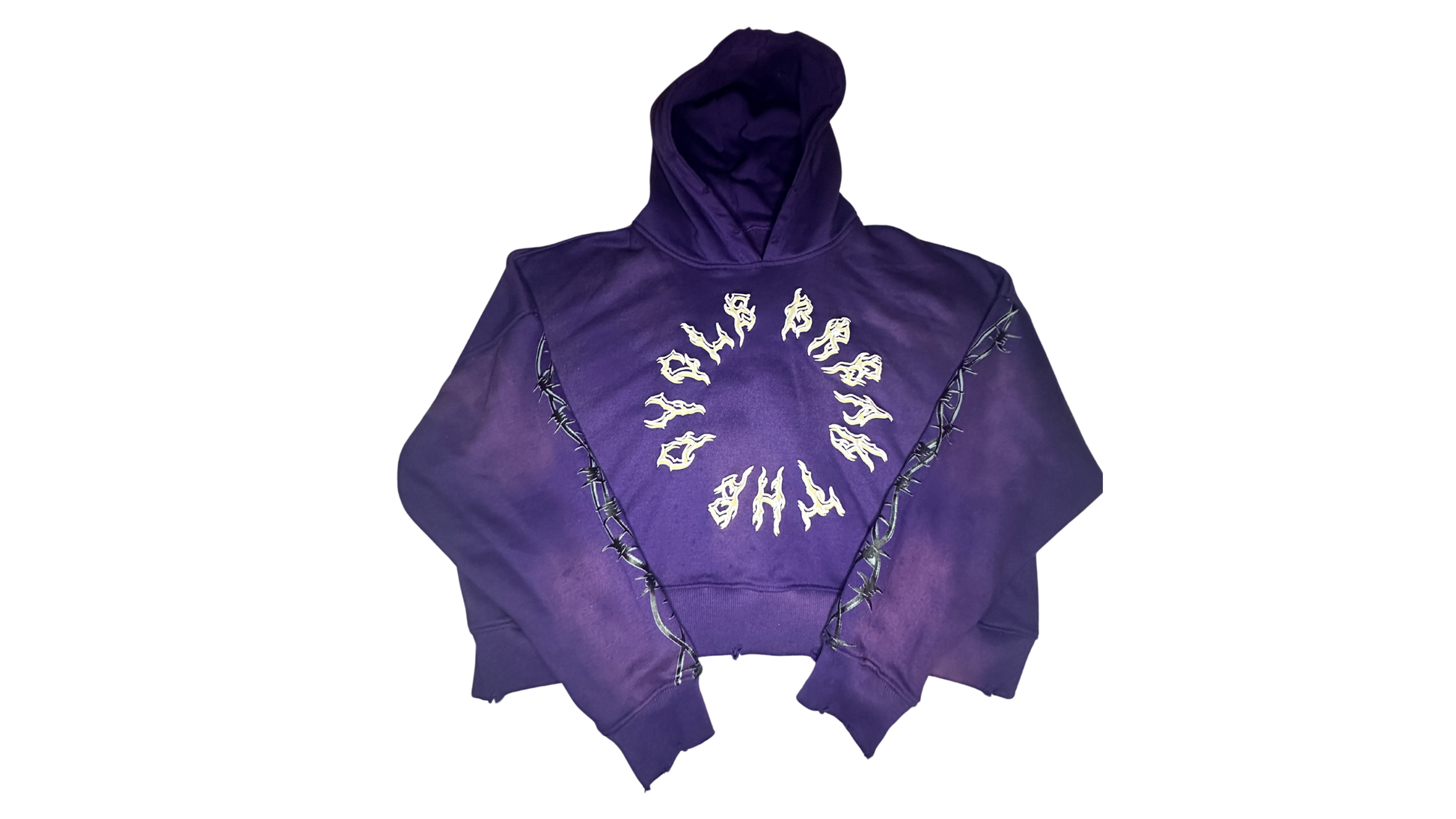 Each hoodie is uniquely distressed and sun-faded, undergoing a meticulous process that gives it a naturally weathered, vintage aesthetic. The worn-in look reflects the essence of resilience, capturing the scars of struggle as badges of honor. For those who prefer a more classic, full-length fit, simply size up to adjust the crop.