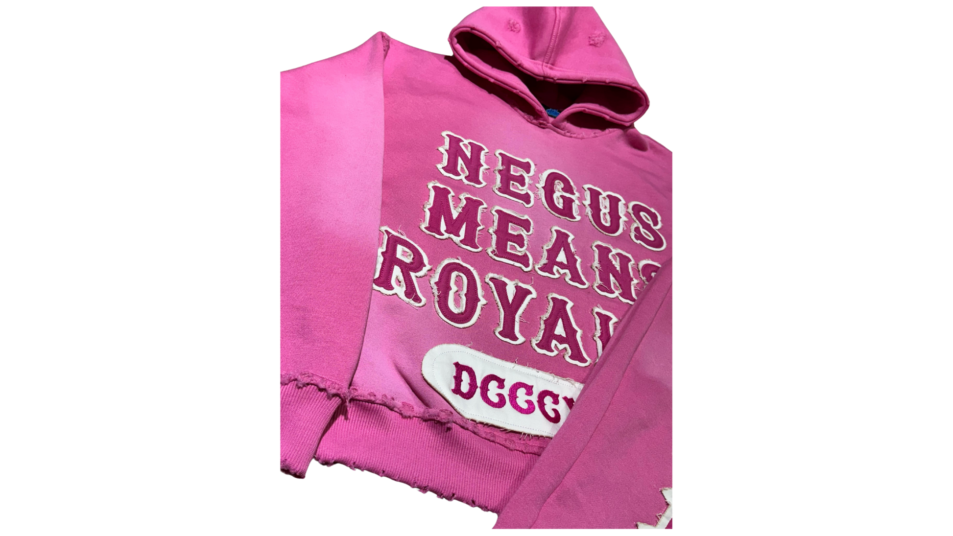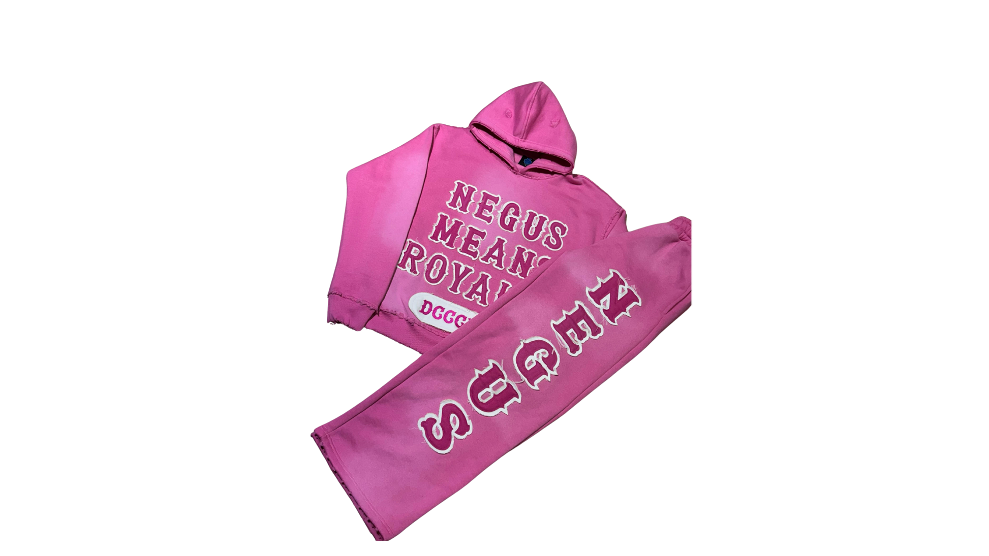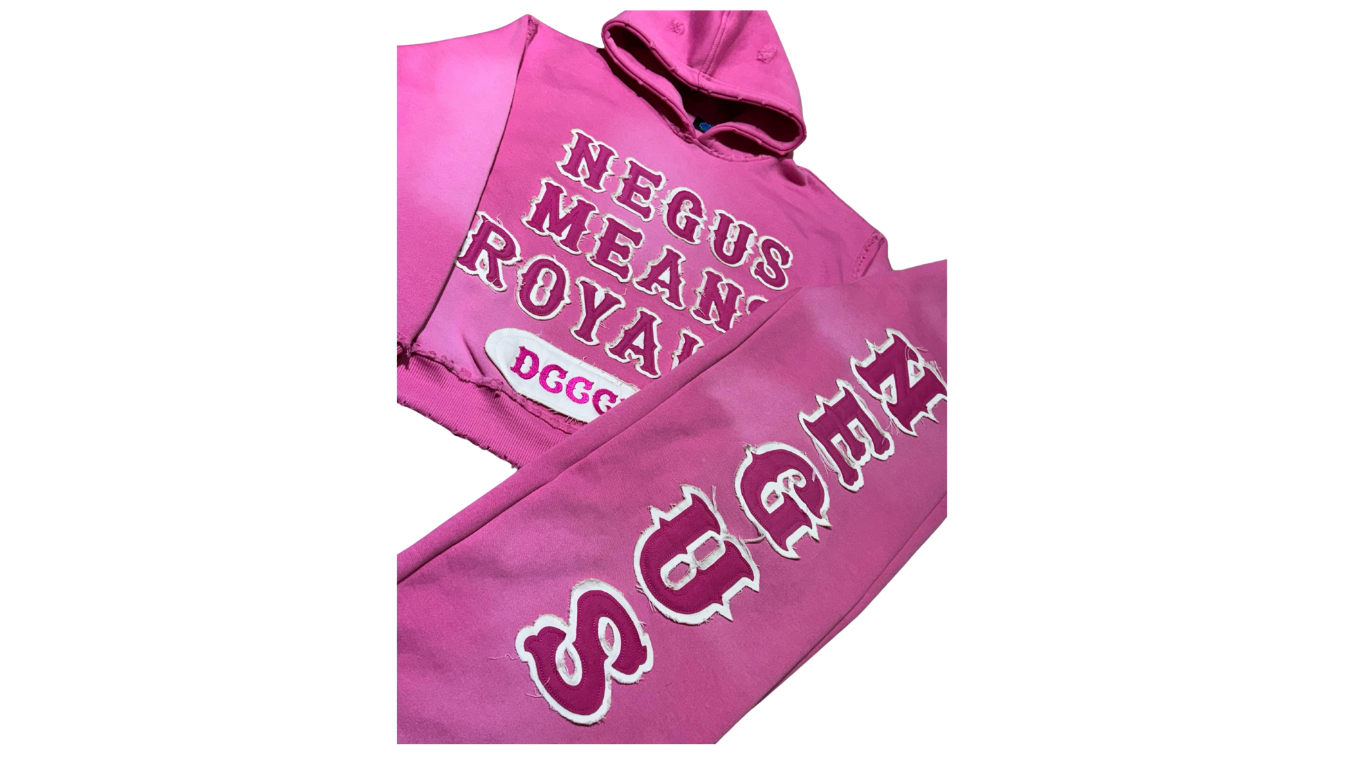 The Negus Means Royalty sweatsuit isn’t just fashion—it’s a reflection of legacy, power, and self-worth. Every distressed detail and bold appliqué lettering is a reminder that greatness isn’t given; it’s earned, reclaimed, and worn with pride.