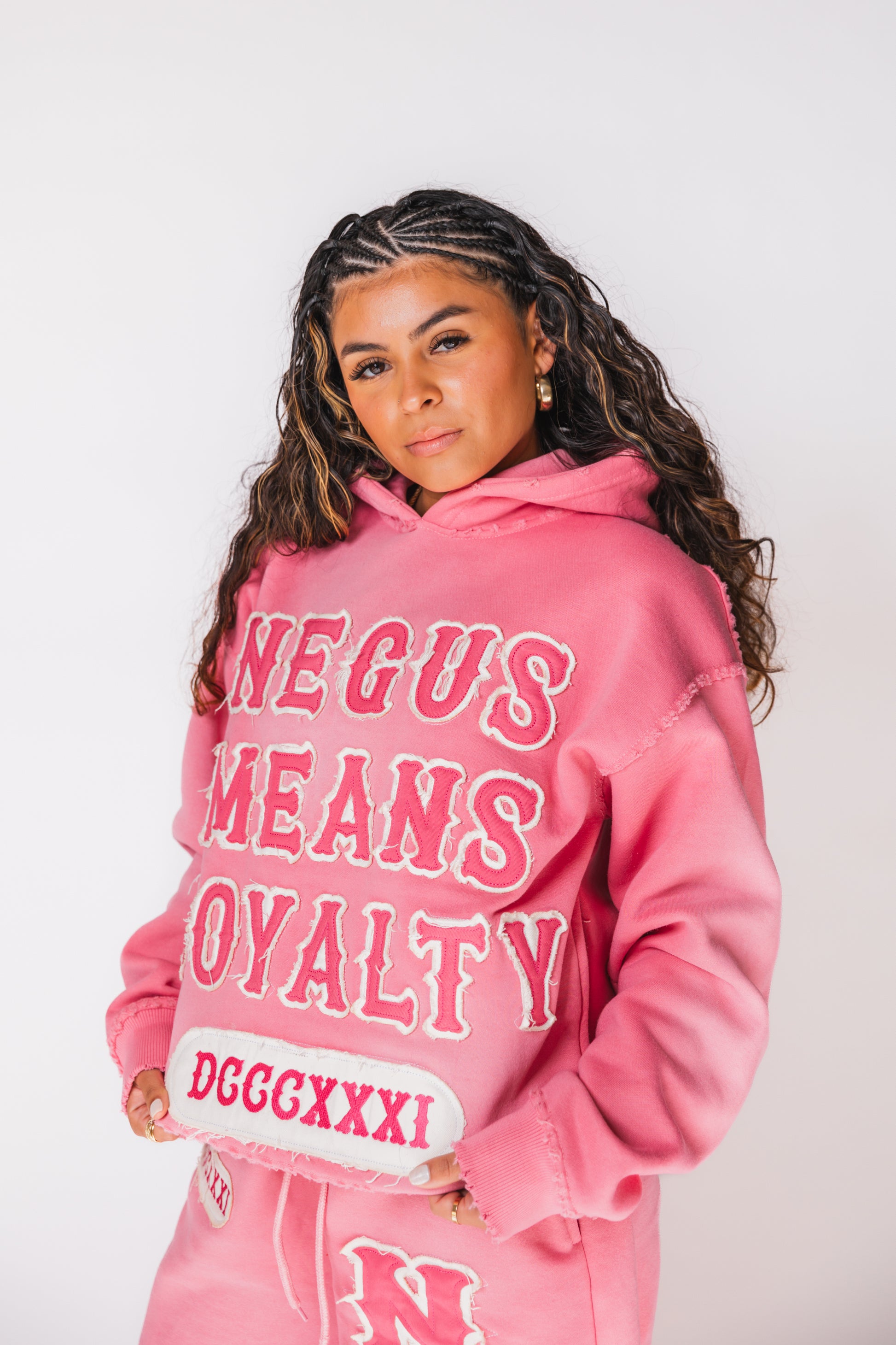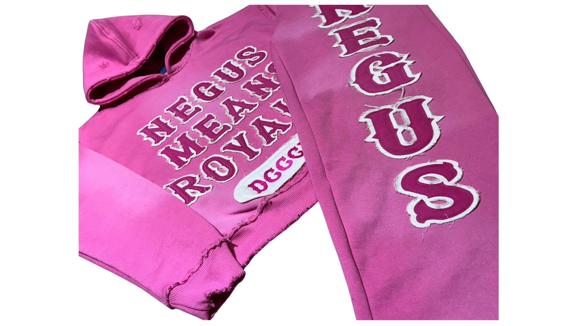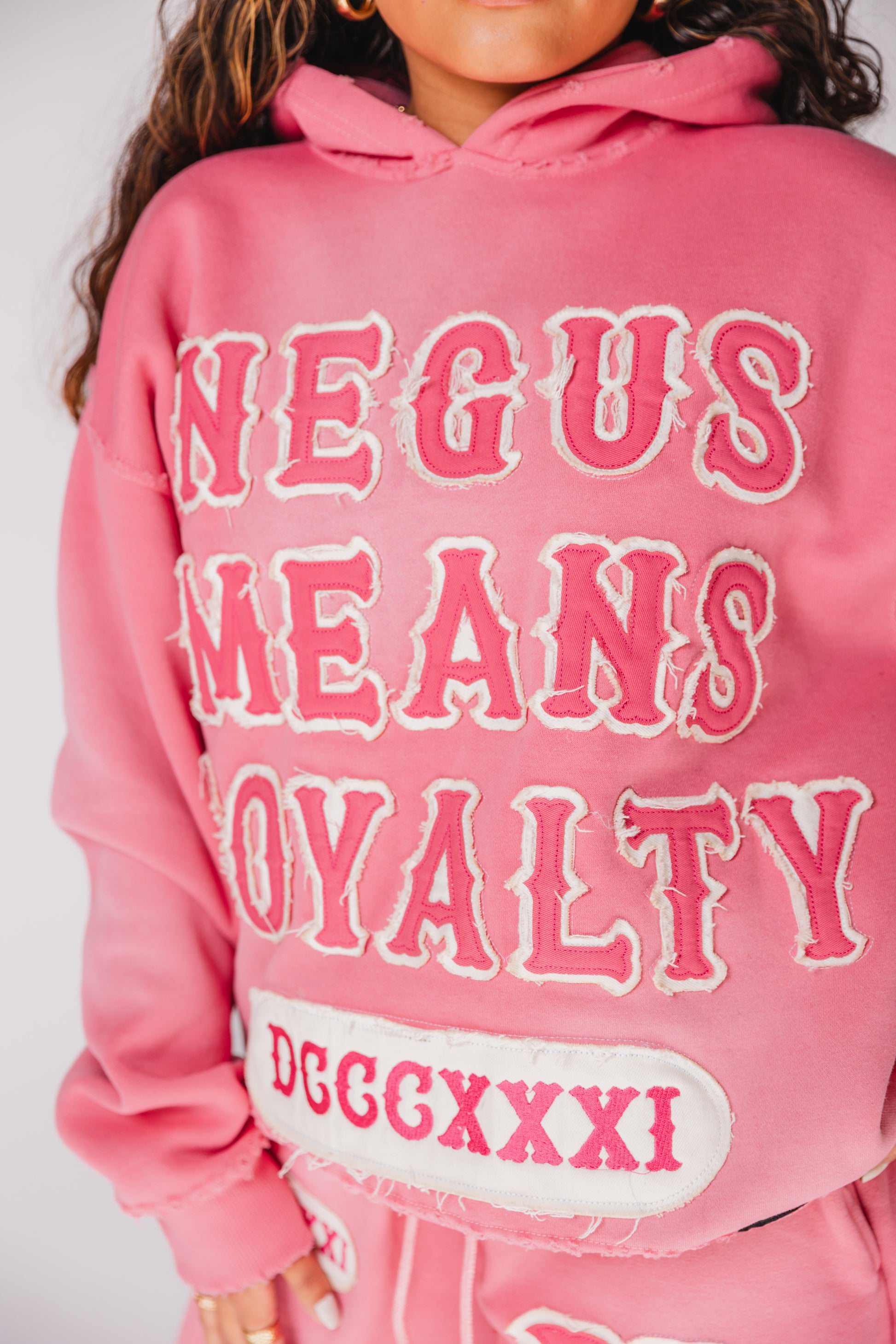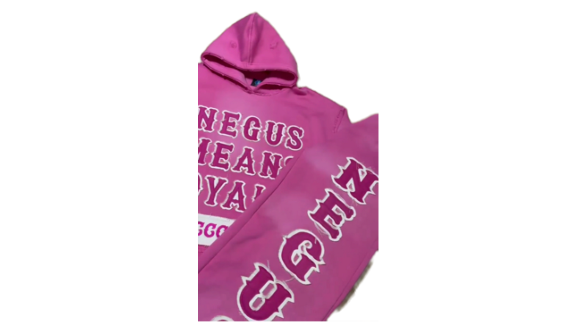 The Negus Means Royalty sweatsuit isn’t just fashion—it’s a reflection of legacy, power, and self-worth. Every distressed detail and bold appliqué lettering is a reminder that greatness isn’t given; it’s earned, reclaimed, and worn with pride.