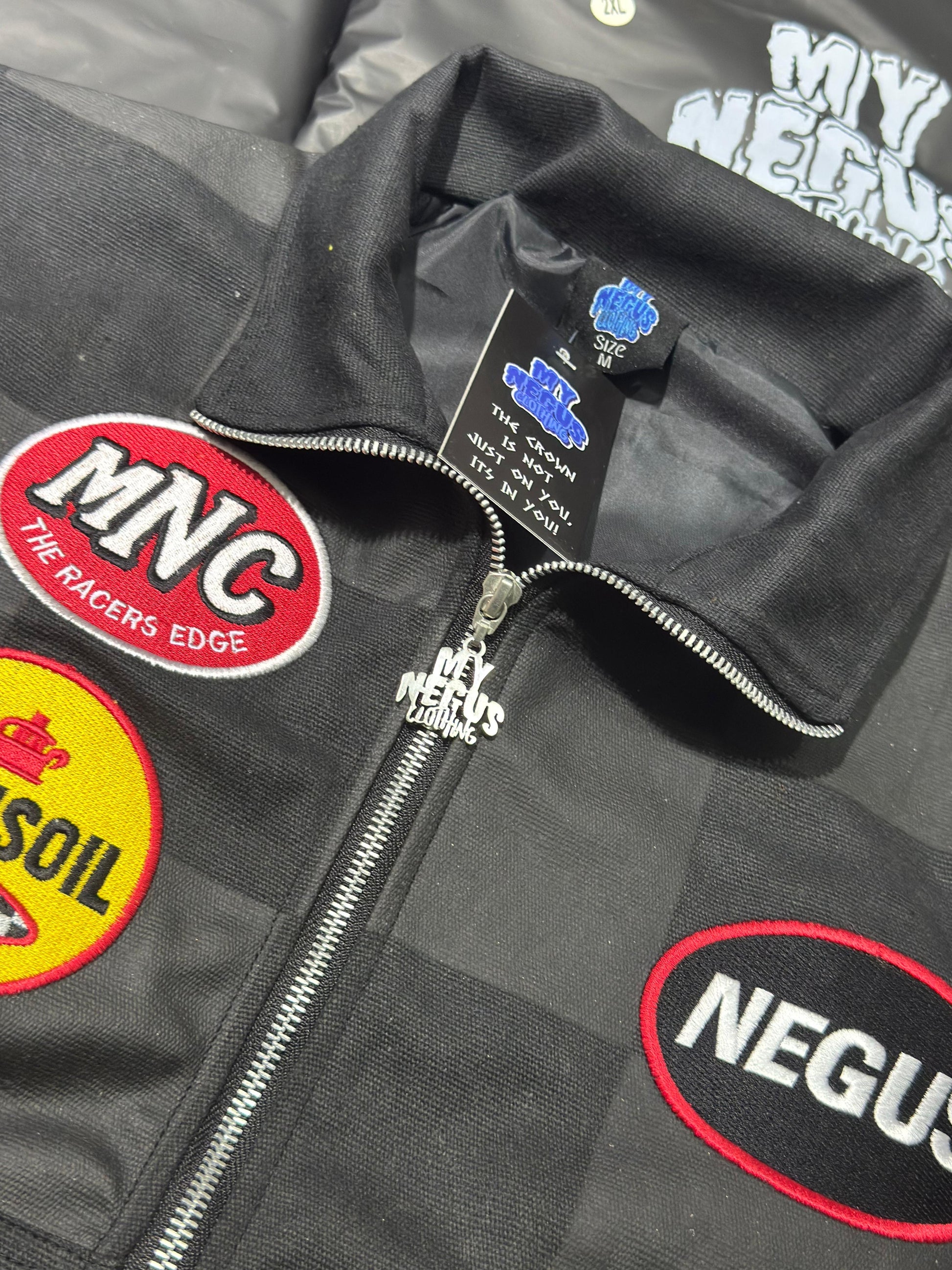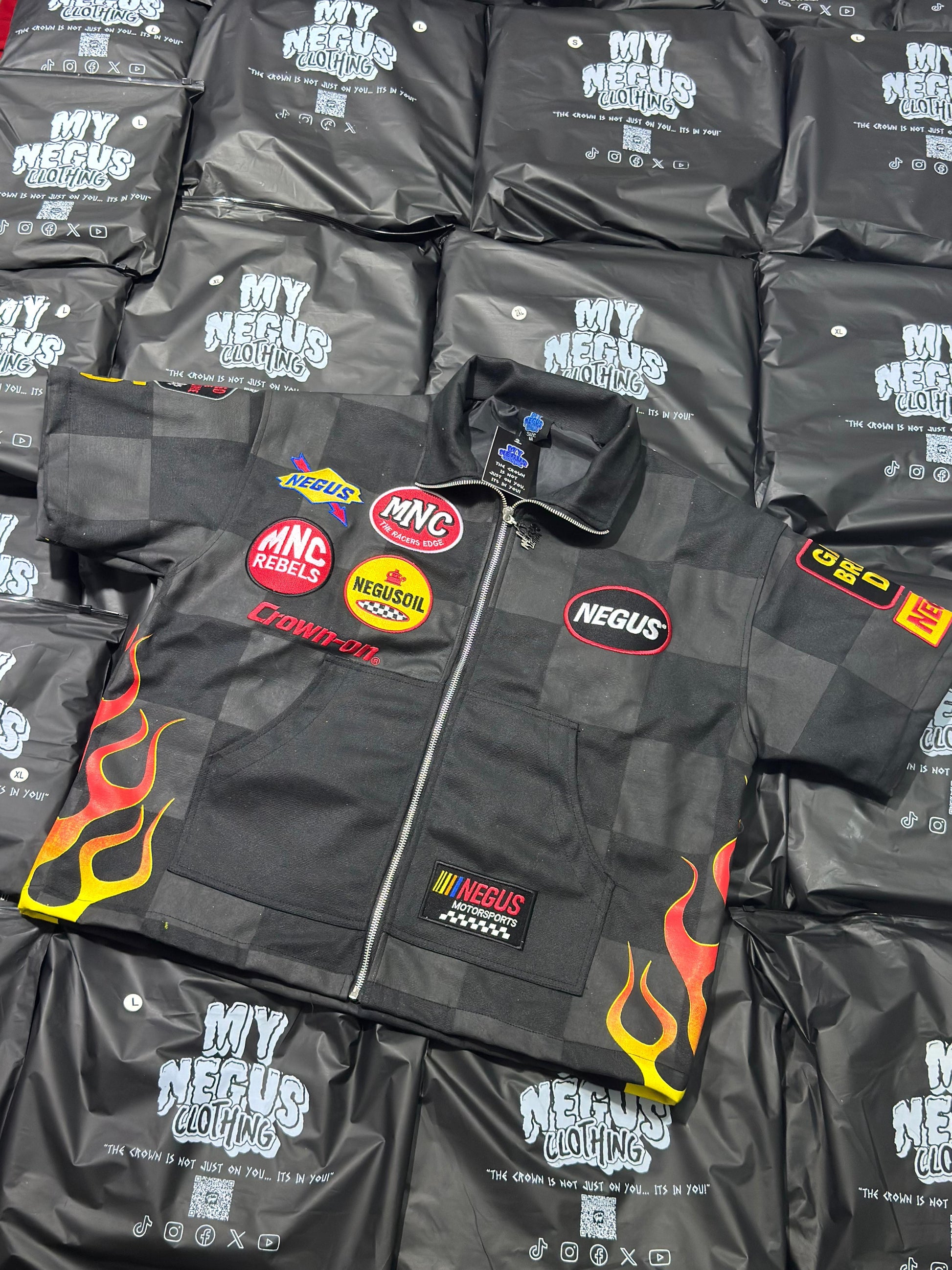 Features a boxy, cropped silhouette — roomy in the shoulders and chest, slightly shortened for that vintage race-day look. Clean lines, wide stance, and unapologetic drip.